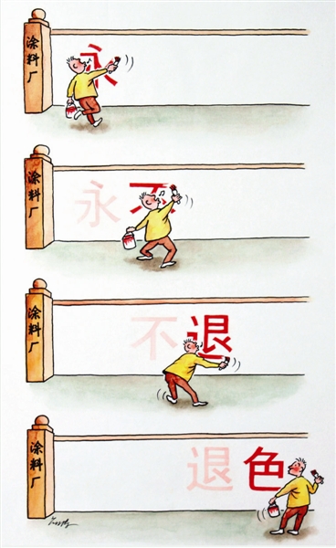 说白了,涂料厂是卖“色”的。卖东西一定要吆喝,吆喝就要让人听,用自己的产品在自己的墙上以标语的形式“吆喝”,这想法不算特别。但特别的、特别令人想不到的是,“永不退色”几个大字,既没有为产品本身争光,也没有为制造者争气,颜色边写边退,甚至退得令人猝不及防。