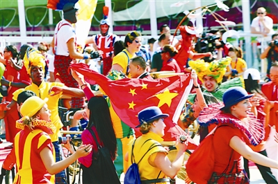中国代表团升旗仪式隆重而活泼。CFP供图