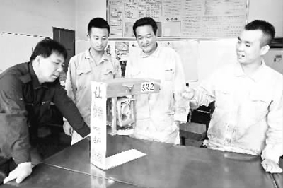 可乐罐、纸盒子、小铁丝……这些生活中的废旧物品,经宁波港股份有限公司北仑矿石码头分公司机修厂铆焊班的张逢祥一番创新整合后,就变成了一个个用于班组安全教育的小道具。7月13日,在炎热高温停工时段,该班职工在候工室里用小道具模拟现场的高温作业环境,一起找焊接工作中的薄弱环节。 周磊 蒋晓东 摄