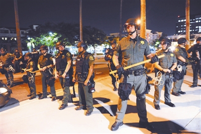 美国加利福尼亚州南部城市阿纳海姆接连4天发生警民冲突事件。在24日至25日凌晨发生的冲突中,至少6人受伤,有24名示威者遭拘捕。今年以来,阿纳海姆发生多起警方涉嫌参与的枪击事件,至少5人在这些枪击事件中丧生。警方在执法过程中涉嫌滥用枪支招致当地民众强烈不满。 新华社记者 杨磊 摄