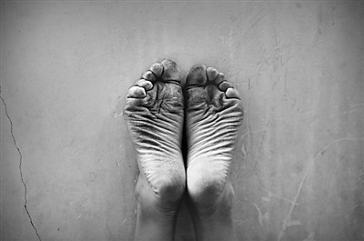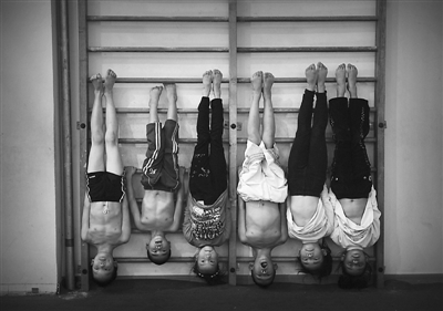一双在练倒立的脚。