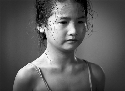 汗水与眼水交织在脸上的小女孩。