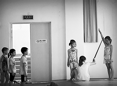 孩子们在休息时也不忘练功。