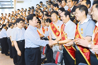 王兆国指出,劳动模范是民族的精英、国家的脊梁、社会的中坚、人民的楷模。爱岗敬业、争创一流,艰苦奋斗、勇于创新,淡泊名利、甘于奉献的劳模精神是我们时代的宝贵财富。希望广大劳模在各个方面都发挥模范带头作用,认真学习贯彻胡锦涛总书记7月23日重要讲话精神,高举中国特色社会主义伟大旗帜,坚定中国特色社会主义理想信念,在思想上、政治上、行动上同党中央保持高度一致;积极践行社会主义核心价值体系,以良好的社会公德、职业道德、家庭美德、个人品德带动全社会;不断学习新知识、掌握新技能,为建设创新型国家贡献力量。广大职工要学习劳模、争当劳模,通过脚踏实地、勤勤恳恳的劳动,在促进企业发展和实现国家富强的进程中实现自己的人生价值,为到2020年如期实现全面建成小康社会目标作出新贡献。