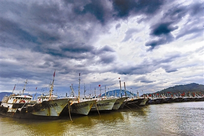 福鼎市沙埕港上空乌云密布(8月2日摄)。新华社记者 张国俊 摄