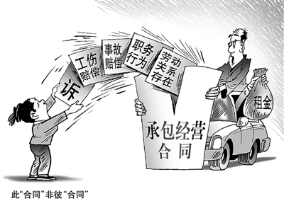 目前,一些出租车公司以公司出租劳动工具(汽车)、司机是通过支付租金取得劳动工具使用经营权、公司与司机属承包经营关系为由,规避公司与司机存在的劳动关系。日前,南通市中院、江苏省高院对一起出租车司机工亡案作出判决、裁决,《承包经营合同》不能替代《劳动合同》——