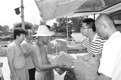 张宇和朋友们自发组织的救助队,在房山为灾民发放救助物资。