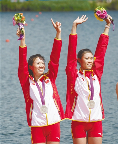 8月4日,在赛艇女子轻量级双人双桨决赛中,中国组合徐东香/黄文仪摘得银牌。