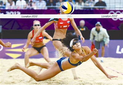 8月4日,在奥运会沙滩排球八分之一决赛中,中国选手薛晨/张希晋级。CFP供图