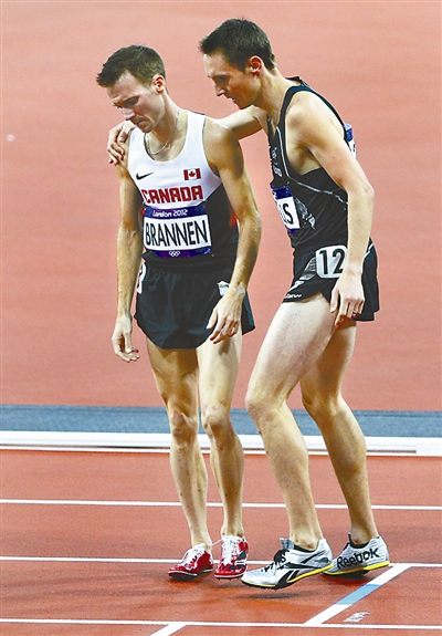 当地时间8月5日,新西兰选手尼古拉斯·威利斯(右)在男子1500米半决赛后安慰加拿大选手纳森。
