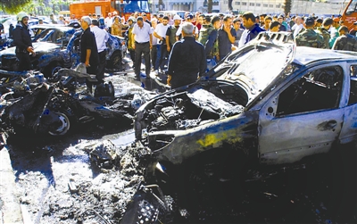 9月7日,叙利亚大马士革,汽车爆炸现场。据媒体报道,爆炸事件造成1人受伤。这是大马士革在数小时内发生的第2次爆炸事件,之前的Rukneddin郊区清真寺爆炸事件造成至少6人死亡。吉平 供图