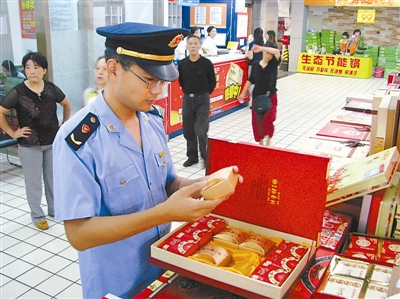随着中秋佳节的临近,月饼市场日渐火爆。为保证辖区内商场、超市以及食品店销售月饼的质量,近期,北京市东城工商分局加强对辖区内月饼市场的检查力度。严格落实索票索证制度,确保进货渠道正规;抽查月饼质量,确保质量安全可靠。