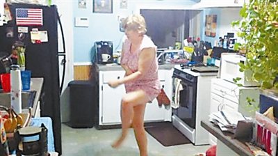 影片中,尼克的母亲身穿粉红色睡衣出现在厨房,双手抱在胸前,身体左右摇晃,尼克顺口问母亲在做什么,母亲回答“我需要特殊密码”,两只脚同时不断地前后移动,好像是在跳某种舞步,接着原地转圈并对镜头突然微笑。