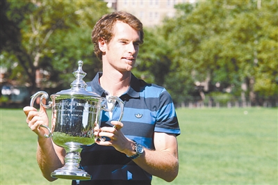 9月11日,2012美国网球公开赛新科冠军穆雷在纽约展示奖杯并拍摄纪念照。 CFP供图