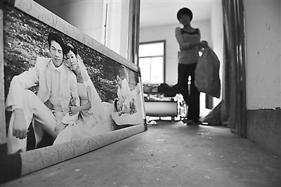 王传清一家将要离开他们居住30多年的家,床头的结婚照是他们在此生活的见证