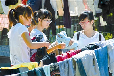9月15日,江苏大学“关爱超市”举办自选开放日,让该校贫困大学生免费挑选自己需要的书籍、服装等学习生活用品,为他们送去爱心关怀。“关爱超市”是由江苏大学退休教师发起成立,专门帮助贫困学生的公益组织。“关爱超市”将该校师生捐献的适合大学生使用的衣物、书籍、学习用品等统一整理分类,无偿提供给该校贫困大学生选用。