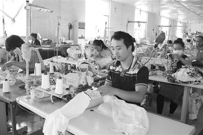 日前,面对目前纺织服装企业女缝纫工短缺的现状,山东省梁山县要求用人单位和求职者逐渐转变传统用工、就业观念,大批男缝纫工走上工作岗位,缓解了这些企业的用工短缺局面。图为嘉和服装厂男工上岗一角。(杨玉建 曹阳摄)