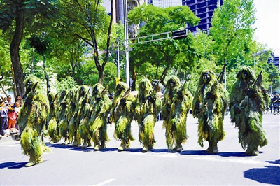 9月16日,墨西哥首都墨西哥城举行盛大阅兵仪式,庆祝墨西哥独立202周年。1810年9月16日,被墨西哥人民称为民族之父的伊达尔戈在多洛雷斯的教堂敲响了反对西班牙殖民统治独立斗争的钟声。9月16日后被定为墨西哥独立日。图为身着伪装服的士兵参加阅兵仪式。谢涛 供图