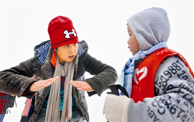 一年多来,王濛也参加了一些社会公益活动。图为2012年1月11日,王濛在四川省成都市参加爱心助残活动,教聋哑儿童滑雪为残疾人祈福。CFP供图