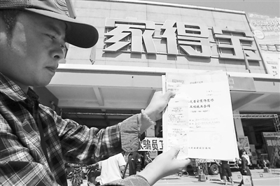 9月14日,郑州家得宝店大门紧闭,员工和供货商情绪激动等待讨要工钱。一名顾客展示办理不久的家得宝定金卡。13日下午4点,家得宝建材超市宣布全国关店,家得宝中国区接到美国总部的通知:关闭在华所有门店,退出中国市场。
