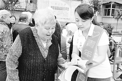 9月14日,汉中车务段“身边有我”志愿者服务队一进广元生活小区,就被职工和家属们围上了。图中这位让志愿者服务队员李敏给她讲讲健康知识的老人,是汉中车务段助理值班员华德强的母亲,华德强在宝成线四等小站观音坝车站工作,每10天才能回家一次。80多岁的华妈和不到10岁的孙子这一老一小的生活,便成为汉中车务段“身边有我”志愿者服务队帮扶的主要对象之一。该服务队是专为帮助解决沿线各站职工在工作期间的家庭困难而成立的,队员们都来自一线班组,服务内容包括突发疾病的应急处置、送医院,更换煤气、买米、买面等体力劳动,小电器维修,医保、社保政策咨询和志愿者家教服务等,自6月份成立至今,该服务队已连续3个月深入社区服务,深受职工及家属的欢迎。
