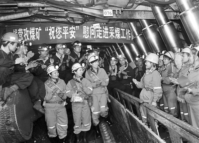 在慰问现场,协安员们还表演了丰富多彩的文艺节目,提醒大家注意安全生产,祝矿工们国庆节快乐。李继峰 摄