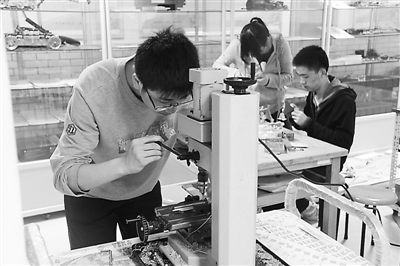 北京理工大学参与了高校开放日活动,图为该校学生在展示他们的创新作品。
