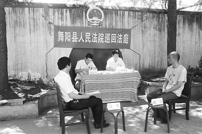 为方便群众诉讼,河南舞阳法院根据该县的具体情况,设立了一个巡回法庭,建立了一支相对固定的巡回法庭法官队伍。法官经常深入田间地头开展司法调查工作,开庭则常在农家院落和农舍内。截至目前,该巡回法庭今年内已到全县14个乡镇巡回立案32件,巡回审理案件52场次,就地化解纠纷46件。巡回法庭不仅方便群众,而且能快速化解矛盾,止争息诉,因此深爱群众欢迎。