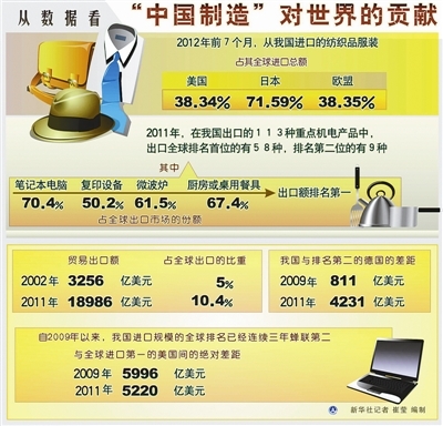 经过近10年来的努力,我国在全球生产体系中的作用更加重要,“中国制造”不仅在纺织服装、鞋类、箱包等劳动密集型产品的出口方面保持优势,在部分技术含量较高、增值率较高的产品上,也正逐渐形成新的竞争优势。