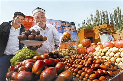 9月26日,新疆泽普第五届红枣节开幕,泽普县大红枣今年大丰收。全县果林总面积达43.64万亩,其中红枣20万亩,目前全县已建成有机红枣生产基地13个,红枣认证种植面积10万亩,10万亩核桃通过GAP认证,成为全疆目前最大有机果品认证县。