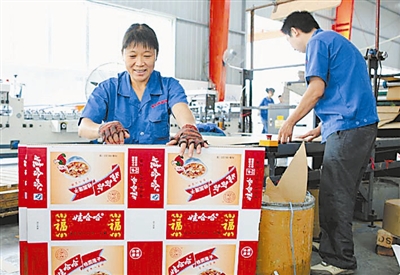 9月21日,四川广安市广安区新桥乡金桥村返乡农民工在前锋工业园区杭瑞纸品生产车间检查刚生产出来的包装箱纸板质量。今年以来,该区通过在其前锋工业园区召开万人招募大会、上门宣讲等形式,迄今已吸引近万名返乡农民工家门口就业。