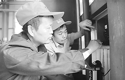 图片左边人叫任伟,是西安东车辆段电算室员工,他和同事史部队一起在完善9月21日班组研制的调车安全预警系统。调车作业就怕有人侵线,如不能及时发现,便会发生人身安全事故。于是,该段电算室决心自主研发、设计、制作安全预警系统。7月初他们开始研制,经过几个月的反复模拟试验,终于成功地将激光警示、语音警示与调车人员对讲机进行连通,作业中一旦有人侵线,该系统便会给调车人员和作业区域人员发出警示。贾智炜 摄