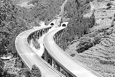 承担纳(溪)黔 (川黔界)高速公路第2标段修建任务的中铁十八局集团一公司,在当年红军战斗过的赤水河畔,面对施工条件非常恶劣、地质结构十分复杂等困难,以科技攻坚化解一道道施工难题,不断加快施工进度,成为全线共计20个标段的施工排头兵。图为全长1080.9米的两岔沟特桥雄姿。(李永旺)