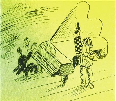 构思奇巧的漫画令人捧腹,脱离生活、违背常规的“搞笑”却很乏味,“愚乐”替代不了艺术的逆向思维。这幅画就不太成功。