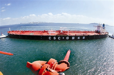 10月10日,船长330米、船宽60米、吃水21.4米的“长江之耀”准备靠泊青岛港三期油码头。