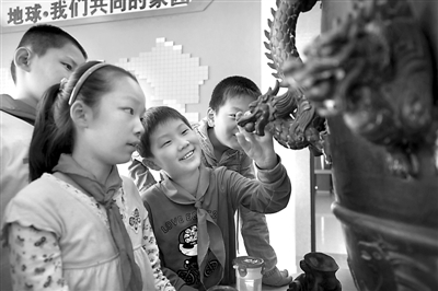 10月10日,学生们在学习古代地震仪的工作原理。当日,合肥市笔架山街道组织辖区农民工定点学校翠庭园小学十多名学生来到合肥市防震减灾科普教育馆学习地震的成因、地震灾害发生时逃生避险等知识,通过馆内讲解员引导学生们参观多种地震监测仪器及家庭防震演练室,并现场教授学生们在地震发生时如何避险。新华社记者 杜宇 摄