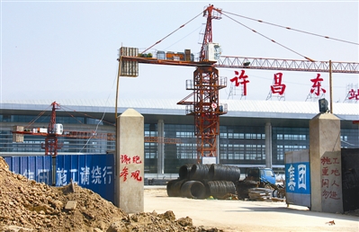 10月9日上午,在石武高铁河南省许昌站站前广场上,塔吊耸立,钢筋水泥等建材堆积在偌大的广场上,施工工人正在热火朝天地赶着“工期”,需要搭乘高铁出行的乘客,需从工地和售票大厅中间预留的“小道”走到候车室候车。9月28日,石武高铁宣布正式开通运行。对此,不少乘客甚是不解:国家重点项目最初设计时,为什么没有做到统筹安排?配套设施没完工就仓促开通运行,能确保安全吗?魏人 摄