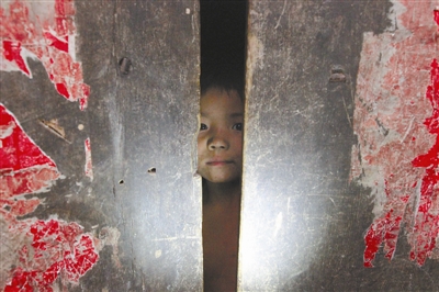 10月7日,河南省平顶山市鲁山县一个小山村,透过被锁住的门缝,女童张望外边的世界。