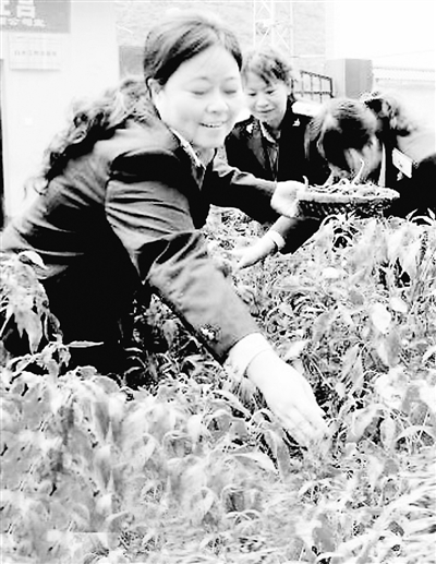 对宝成线白水江火车站客货班领班史均梅和同事们来说,在自己小菜园采摘点丰收菜,是件最开心的事儿。白水江是四等小站,地处秦巴腹地,生活条件艰苦。为化解职工吃菜难的问题,史均梅带着同事们在站区内的空地开辟了两块无公害菜地,种植白菜、葱、蒜苗、丝瓜、西红柿、辣椒等蔬果,不仅为车站食堂一年节约了1000余元的买菜成本,而且还为大家增添了采摘之乐,小菜园成了大家心目中的“开心农场”。图为9月29日史均梅(左一)和同事们采摘辣椒的情景。穆英 摄