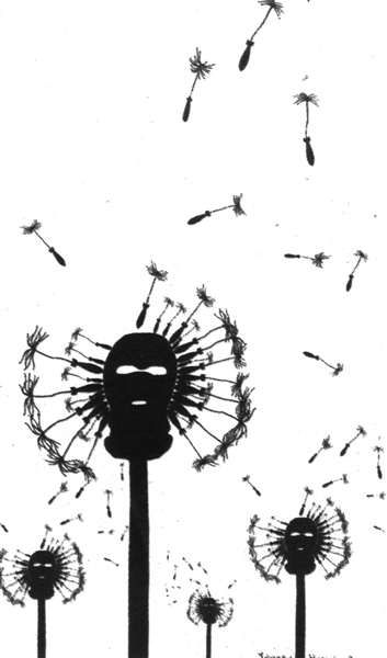 人类对于禁毒成为共识,这幅画将罂粟比喻成蒲公英,又将其绒毛渲染成四处飞扬的炸弹——奇巧。