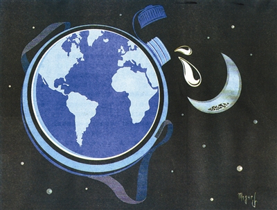 画作表现的是“月亮渴了”。画家的愿望虽好,但是他忘却了地球正在闹“水荒”。