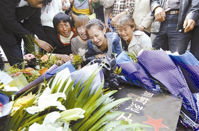 10月13日,在金乡县羊山烈士陵园,亲属泪别烈士周轲。