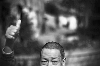 62岁的路大爷是个聋哑人,同样患有阿尔茨海默病的他向镜头伸出大拇指。