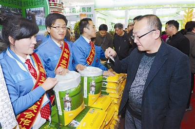 10月13日,中国首家带有“身份证”的大米在哈尔滨销售,顾客正在查看大米“身份证”。据介绍,为保证大米是不可仿造的纯正五常大米,五常大农民合作社的农户在每袋大米中都放置了大米种植户的“二代身份证”。这张卡片的正面印着身份证,背面标注该袋大米的品名、类别、级别、年份、基地、编码等内容。如出现质量问题,可以直接追溯到农民的身上。刘长山 摄