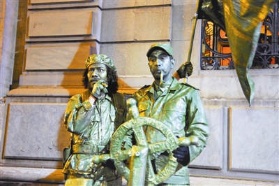 第40届塞万提斯国际艺术节10月3日至21日在墨西哥小城瓜纳华托举行,吸引了数十个国家的艺术团体及数万名全球游客。图为遍布街头的行为艺术表演者。谢涛 供图
