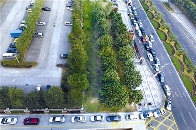 图为10月15日,佛山,南海交警大队,前来上牌的车大排长龙。2012年7月,广州实施“限车令”,新车上牌得摇号或是竞拍。10月15日,记者从南海交警获悉,广州限牌至今,1300多广州户籍市民到南海车管所为新车办理牌照,而此类情况以前很少出现。近日来,南海车管所上牌车亦频繁排长龙。交警表示已将该情况向佛山有关部门反映。 陈志刚 摄
