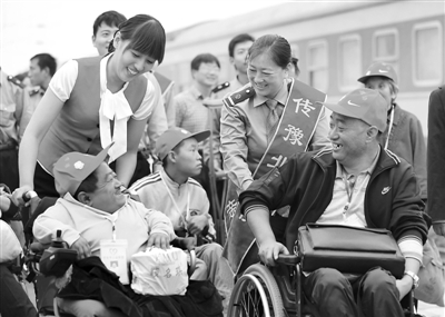 10月18日,20名自发联谊到杭州考察残疾人自立创业项目的河南新乡肢残人士乘坐2595次列车返回新乡。郑州铁路局为他们全程提供了无障碍服务,并办理了往返的卧铺车票、脸盆、坐便、一对一就餐、洗漱等特殊服务。