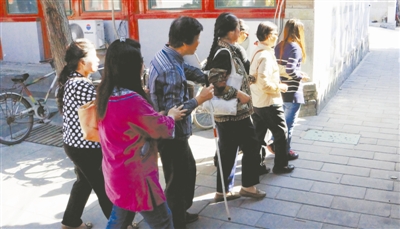 当天的 “ 讲电影 ” 结束了 , 盲人朋友们相互搀扶着尽兴而去 。