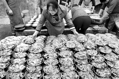 当日,四川南充市龙门街道办事处嘉龙社区居委会举行重阳节“坝坝宴”,社区1000多名老人欢聚一堂,享用99桌丰盛筵席,喜迎重阳节的到来。 新华社发(李向雨 摄)
