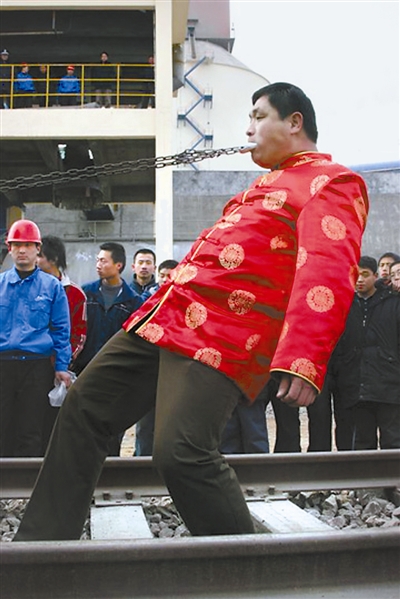 说起丁兆海的确是个传说。他曾在山东卫视“阳光快车道”栏目两次打破臂力棒挑战赛“阳光记录”;曾连续成功挑战山西卫视才艺大比拼“手撕搪瓷脸盆”和“人体倒立弯折臂力棒”两个项目,并打破两个项目的纪录;曾在山东省公证处两名公证员的监督下,用牙齿牵引一辆重6.3吨的金龙牌中巴车,同时手推一辆重2.3吨的长城牌皮卡车前行了25米;曾用牙齿咬住一条铁链,牵引一台重43吨的火车头前行了13米。